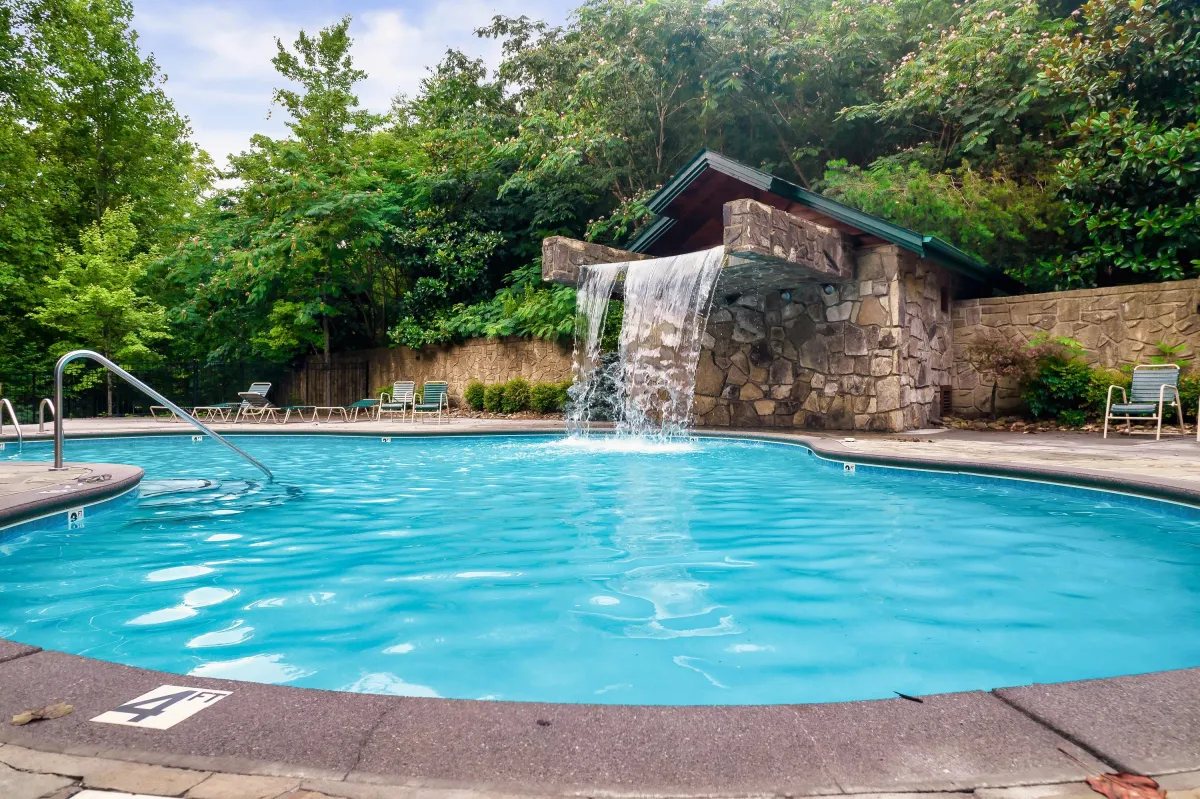 The Ryland is located in the Gatlinburg Falls Resort. The Resort has a community pool, including a kiddie pool and community hot tub. The Gatlinburg Falls Resort pool is scheduled to be open from Memorial Day to Labor Day each summer and from 10:00 AM to 8:00 PM daily during the season. The Resort also has a clubhouse with extra parking if needed. These community areas are a 5 minute walk from the cabin.